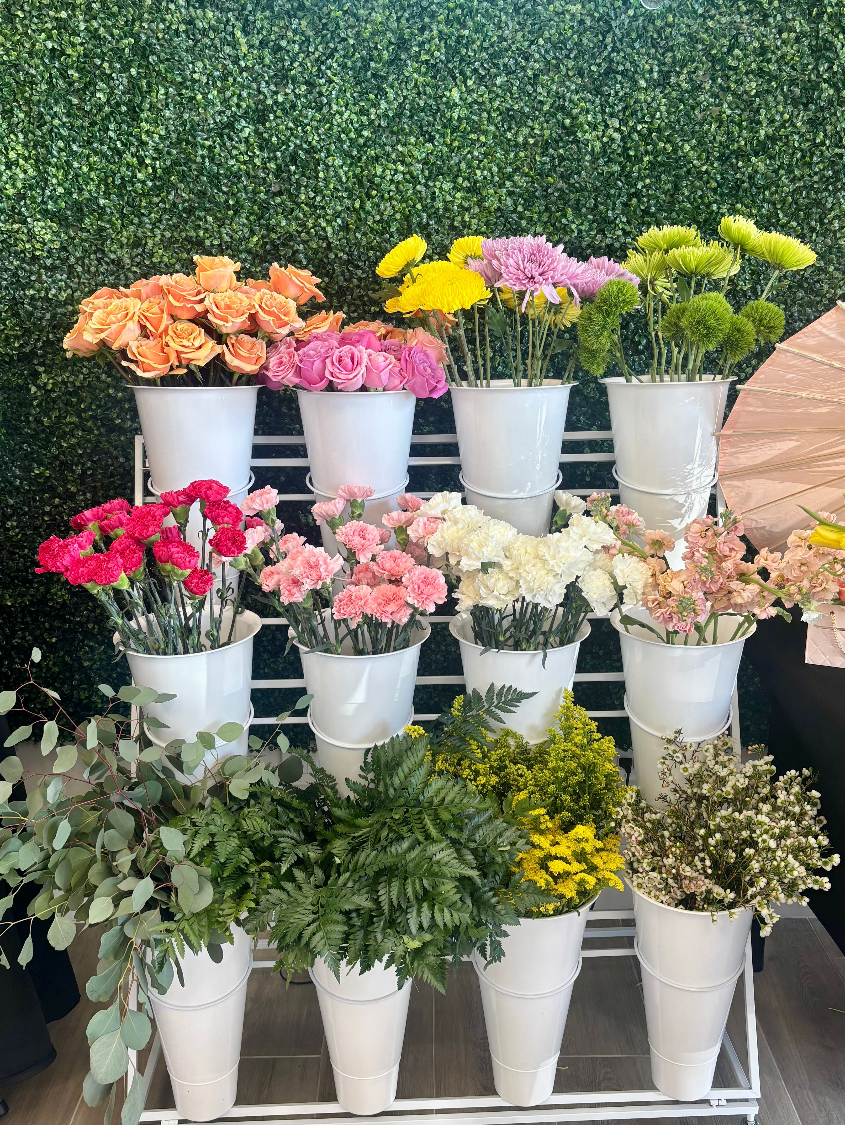 Our Bouquet Bar is an elevated, interactive experience perfect for weddings, showers, and celebrations of every kind. Guests are invited to curate their own custom bouquets from a beautifully styled selection of fresh, seasonal blooms and greenery—creating a moment that feels both personal and artful. Thoughtfully designed and available as a fully hosted experience, it adds a touch of creativity and joy to any event while giving guests something truly special to take home.